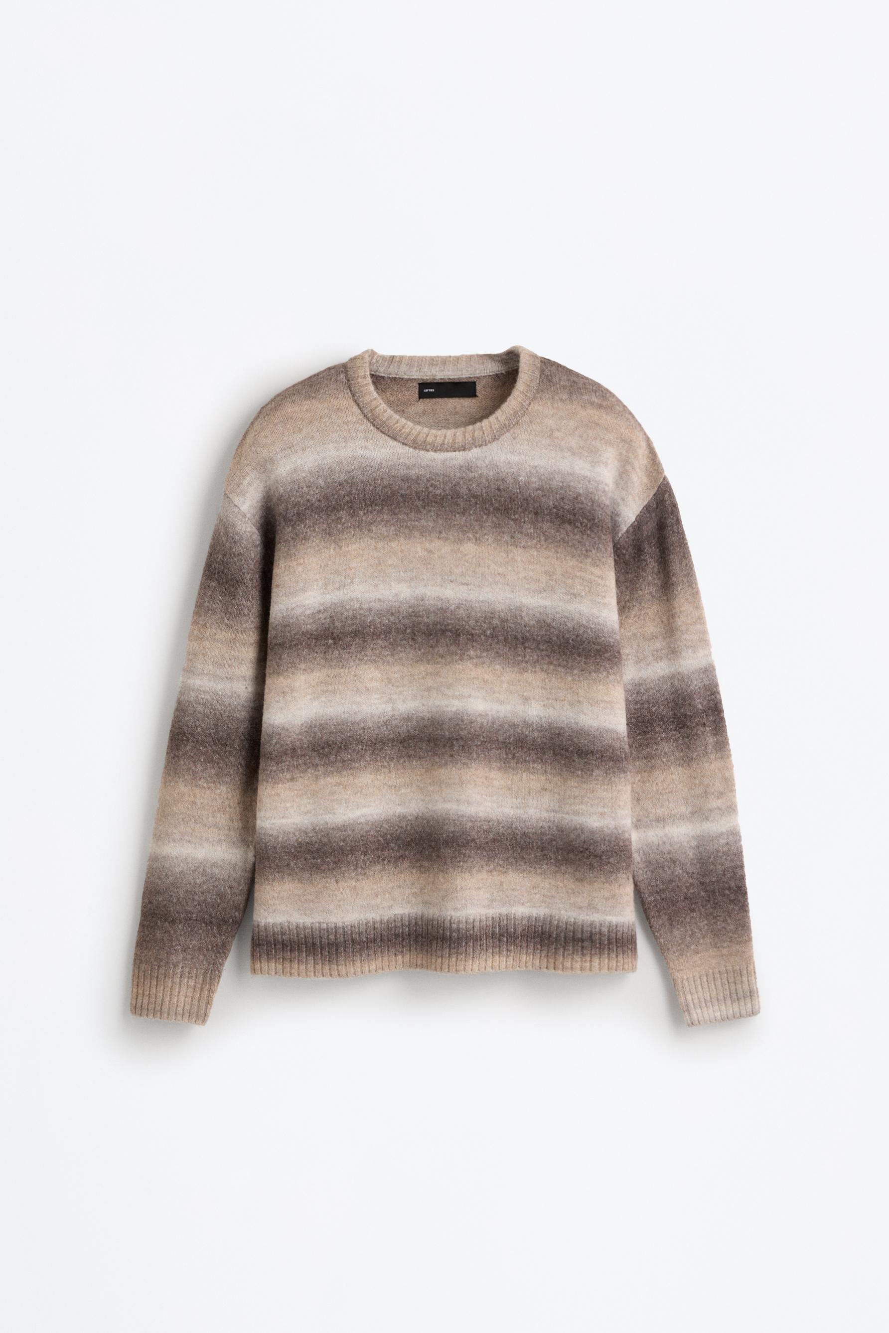 jersey de punto con rayas en tonos neutros, tejido suave y cálido ideal para otoño e invierno