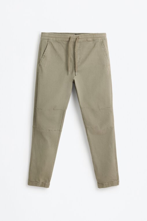 pantalón tipo jogger con cintura elástica y cordón, tejido cómodo y adecuado para uso diario en primavera y otoño.