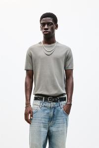 Jersey de manga larga y cuello redondo. Es de corte recto y está confeccionado en un tejido de punto grueso.
