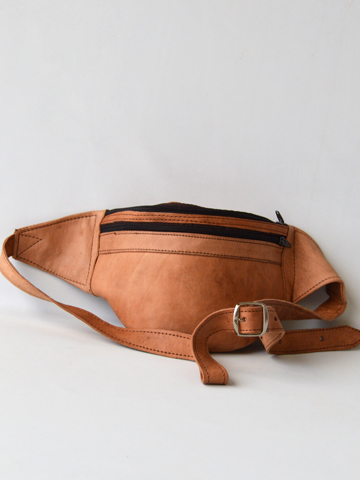 Riñonera de cuero con cierre de cremallera y hebilla ajustable, estilo clásico y funcional para uso diario.
