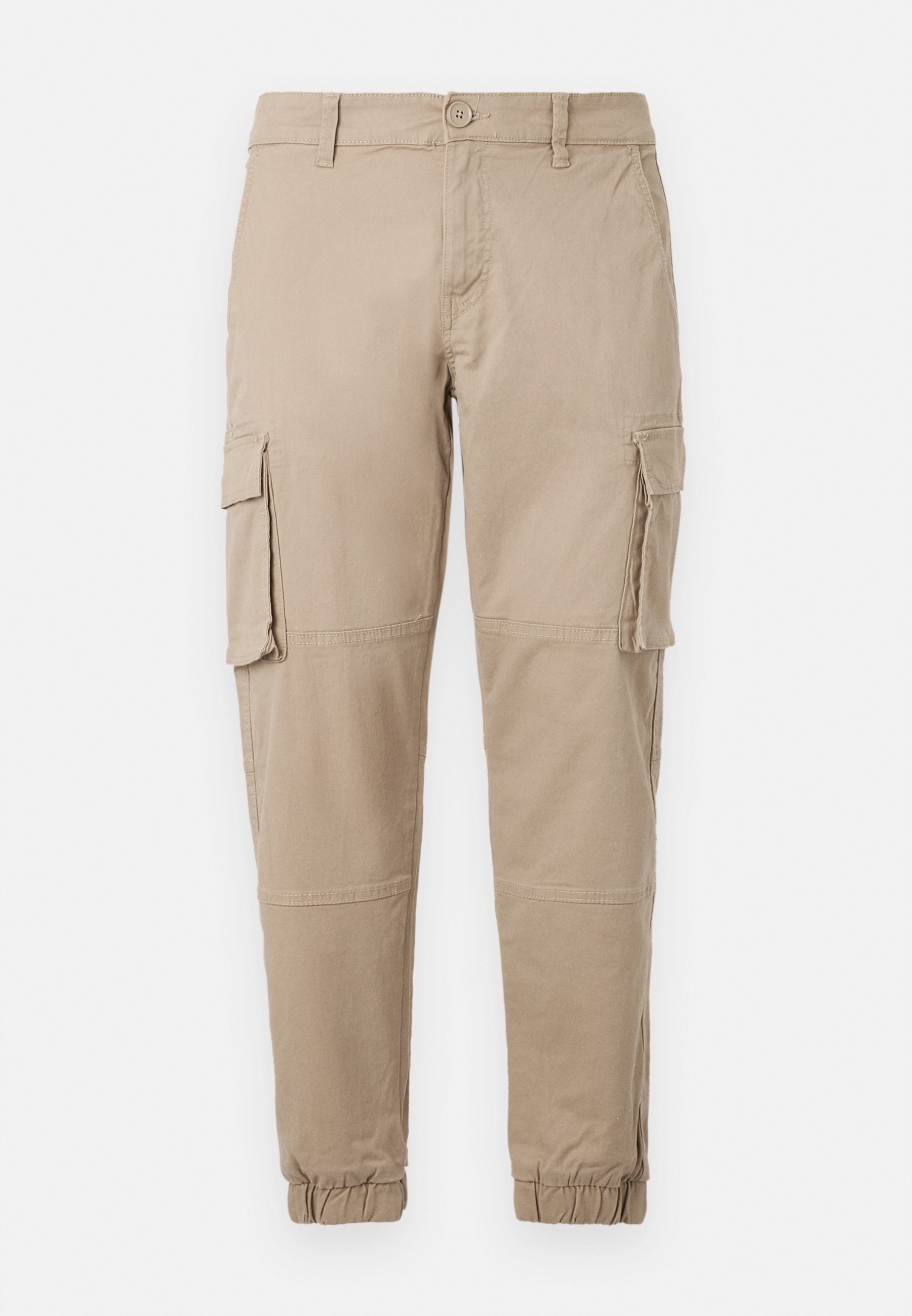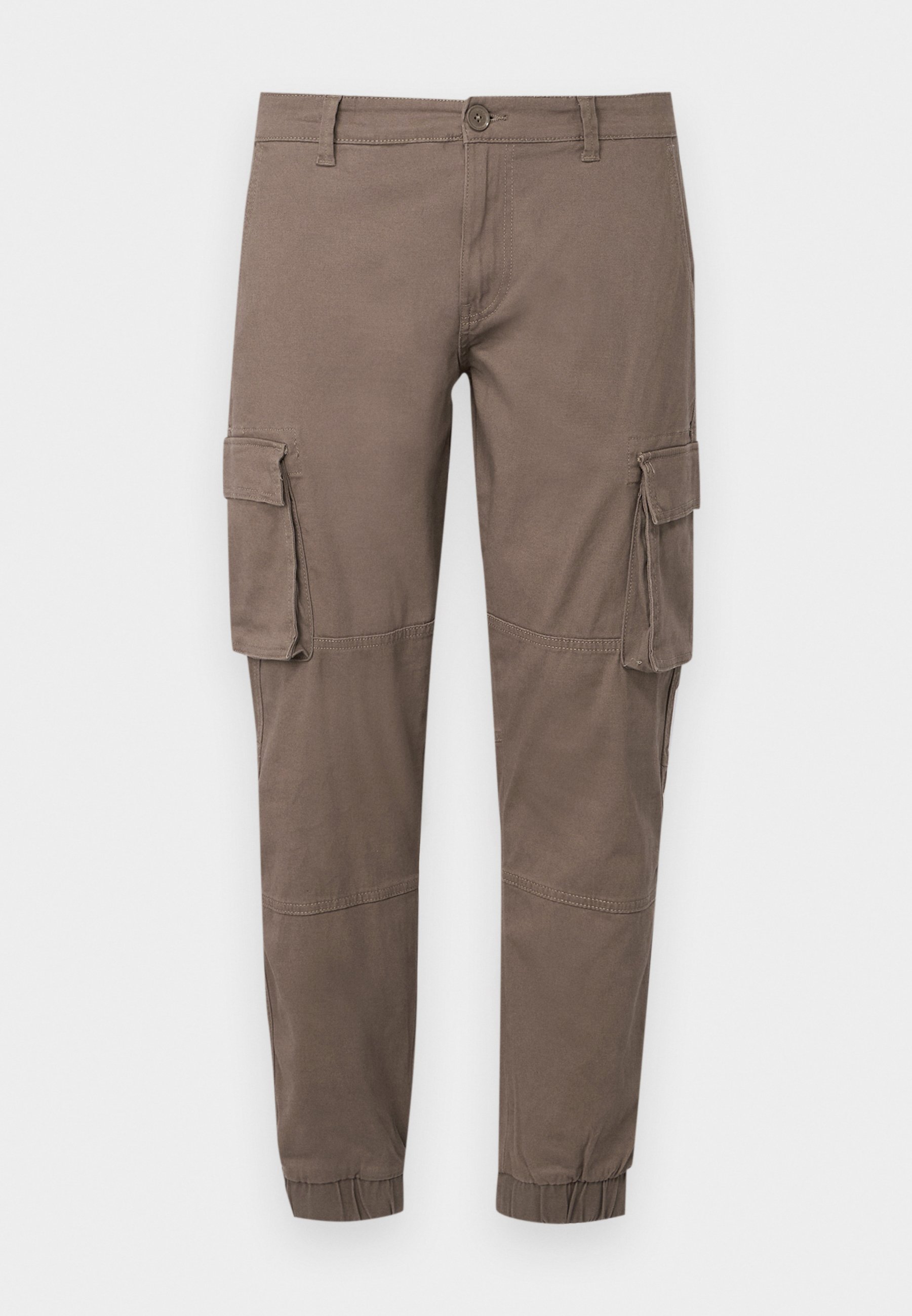 Pantalón cargo, gris claro, estilo jogger, con puño, holgado.