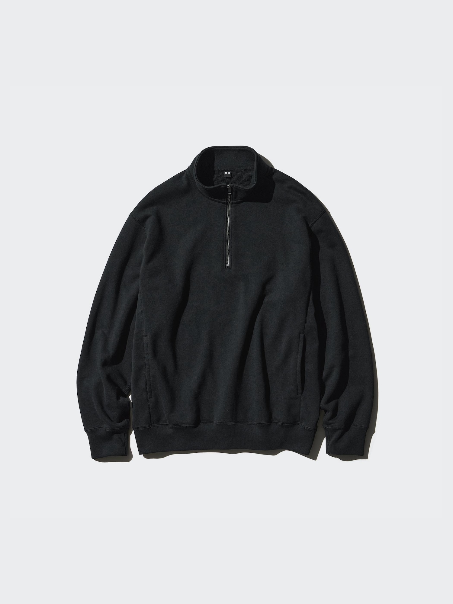 Sudadera de tejido grueso con media cremallera y cuello alto, ideal para otoño e invierno, estilo básico y funcional.